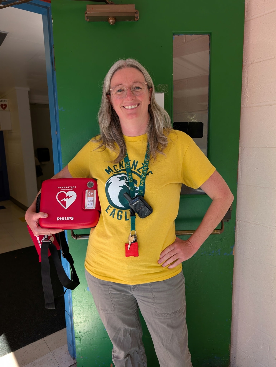 This dramatic rescue was not a matter of luck; it was the result of intentional planning and advocacy. When Liz joined the McKenzie School District, she discovered that the two existing AEDs were outdated, with dead batteries and used pads. Recognizing the risk, Liz launched a campaign to secure new AEDs for every building on campus.